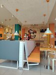 Удобное расположение. Внутри чисто и светло. Очень быстро приготовили кофе. Кофе кстати, достойный. Каппучино отменный, насыщенной и много пены! Есть игровая комната - с ребёнком удобно. Обслуживание на высоте -понравилась улыбчивая девушка Гуля.