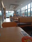Очень хорошее заведение, кассиры добрые, позитивные ,очень вкусно готовят, красивое оформление, так и внутри так и снаружи,очень благодарны за хорошее обслуживание ,столы чистые, полы тоже , окна чистят, хорошая детская комната ,время ожидание быстрое,всё супер спасибо.