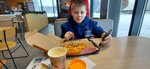 Еда вкусная, обслуживание отличное, кухня прекрасная все вкусно готовят, пицца очень вкусная, тесто не толстое, время ожидание совпадает, все чисто, столы не грязные, туалет тоже в хорошем состоянии, персонал хороший, все милые, добрые, не хамят, приходите не пожалеете