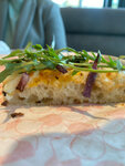 Благородно вкусные сырники со сладким вареньем малиновым и воздушный капучино. Вкусно и сытно. Заказывайте и не пожалеете. По пицце могу сказать что начинка по кускам не сильно равномерно. Но тоже очень вкусно сочетание соуса и грибов. Приятная атмосфера и чисто