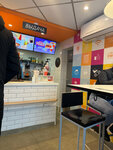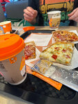 Очень понравилось обслуживание и обстановка 🔥👍 бесконтактный заказ через автомат тоже очень удобно!! Работник выдает чек и сам заказ, не контактирует с деньгами и микробами, отлично придумано!! Можно брать свежую пиццу по кусочку 🫶 2 варианта на выбор!! Песто и барбекю👌 вкусная пицца и приятный чай с липой и мелисой