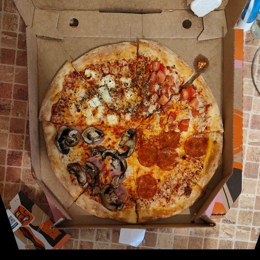 Мне очень понравилось. Салат цезарь очень хорошо зашёл после пар очень удобно зайти перекусить, пицца была шикарная одна половинка креветки и Чили вторая- гавайская, до моего прихода пицца была еще горячей, и очень сытной, и креветки и ананасики очень вкусные были, спасибо за доброжелательность кассира и быструю подачу