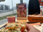 Рада, что Додо открылся в этом месте! Уютный интерьер, понравился вид из окна на город. Есть возможность сделать заказ через терминал, приложение или напрямую на кассе. Девушки на кассе очень милые и доброжелательные - это так приятно❤️ Хорошее меню с пиццей, множеством закусок, десертов и напитков. Приемлемые цены. Пицца приготовлена на тонком тесте с большим количеством начинки.