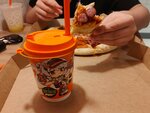 Если вы ждете поезд, то не советую рисковать. Расположение удобное: от вокзала минута ходьбы по прямой. Но вот в час пик время ожидания... Брали один додстер и прождали его почти час! Видна нехватка персонала на такое количество заказов. Возможно во время небольшой загруженнсоти все идет в тайминге, но вот от 10 человек уже чувствуется запара. На втором этаже много столиков. Но, опять же, при большом количестве людей (в основном ожидающих заказ) просто не успевают убирать места. Кстати, отмечу плюс: удобное расположение табло заказов на втором этаже. По вкусу- все отлично. Конечно, одним Додстере невозможно оценить всю кухню... Но он был действительно вкусным и мягким. Туалеты, конечно, узковаты. И очень неудобно, что нет крючков или места для сумок. Но зато есть мыло, теплая вода и бумага. Собственно, из-за долгого ожидания и поставила такую оценку. Если бы не пошли спрашивать, прождали бы еще пол часа. Почему? Потому что, оказывается, заказ уже был готов и лежал на стеллаже, просто не был отмечен, как готовый. Девушка за прилавком разрывалась на помощь на кухне, прием и выдачу заказов.