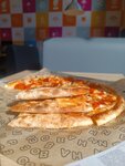Не однократно заказывали здесь пиццы, всегда очень вкусно и быстро. Большой выбор пицц, можно самому собрать пиццу из двух половинок на свой вкус. Также мне очень нравится додстер. Можно взять с собой или перекусить здесь, а можно заказать доставку.