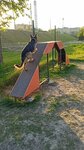 Хорошая площадка с калиткой, которая закрывается на засов, в меру большая, чисто, есть скамейка где можно присесть, пока питомцы гуляют, также имеется урна, 2 эстакады, 1 регулируемый по высоте барьер, и барьер-кольцо, хотелось бы побольше снарядов, но и это уже здорово, в разы лучше площадки по соседству!!!