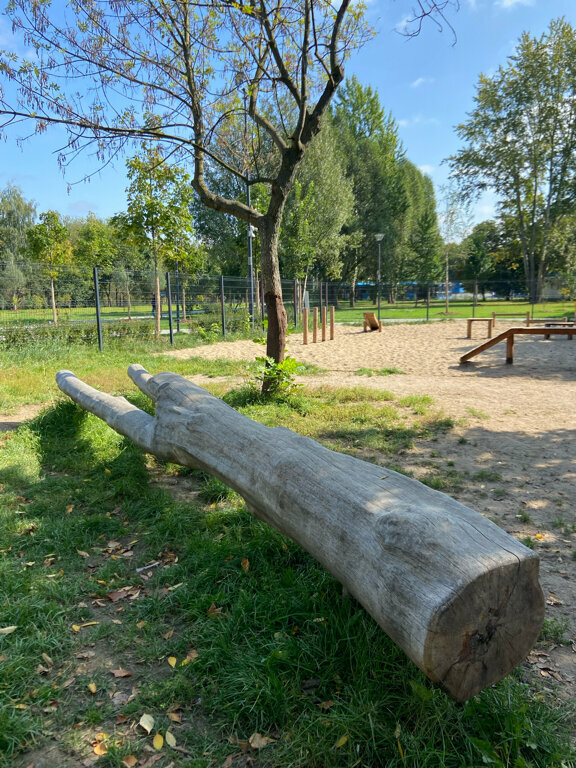 Площадка большая, есть где побегать, достаточное количество снарядов, но они начали разваливаться уже. Плюс отвратительное впечатление оставляет песок, он в обуви и на собаке, от него летит ужасная пыль. Ну и попасть на площадку тяжеловато, как не выйдешь гулять в 18-19 вечера, на ней торчат агрессивные доберманы. Считаю не правильным с агрессивными собаками ходить в общественные места, а собачья площадка как раз общая и является общественной.