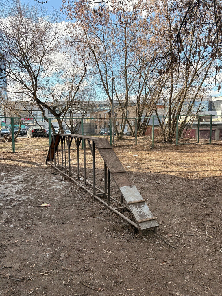 Неплохая собачья площадка, есть некоторые снаряжение, но отсутствие лавочки огорчает. Тут только чисто заниматься с собакой. Хорошее тихое место.