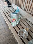 Валяються везде бутылки,стоит корм и вода с мисками.Еще и рыба. Кто знает может что то отравлено) Везде мокро,может песочек подсвпать