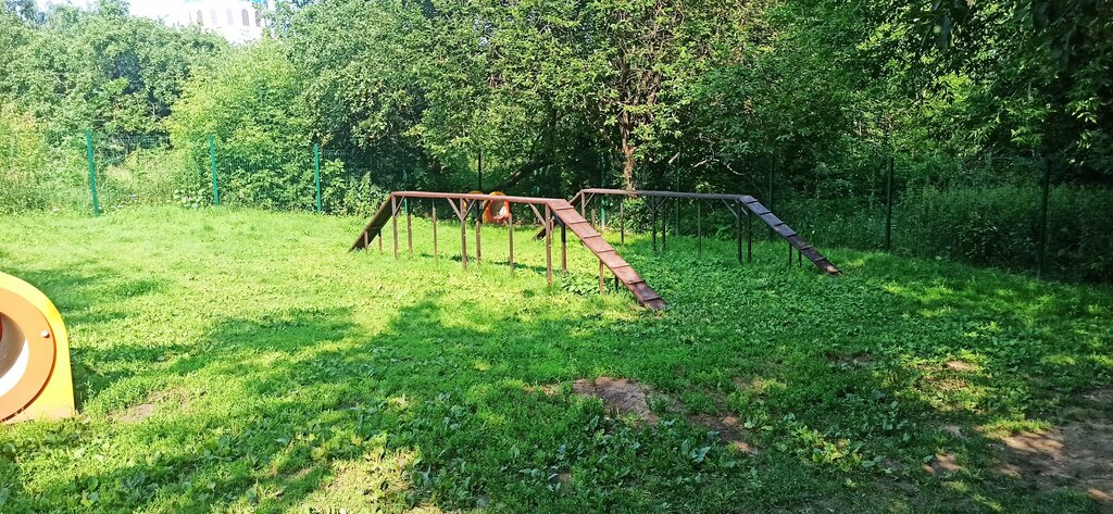 Площадка находится под наклоном, что может быть опасно для собак. Препятсвия отличные! Но у одного из бумов не хватает нескольких ступенек. Так же присутствует люк, который торчит из земли, это может быть небезопасно. Сама площадка чистая, тихая, покрытие травяное. В целом, неплохо)