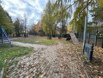 Достаточно большая площадка. Все чистенько, уютненько. Есть скамейки, для того чтобы присесть. Для собакенов есть все, что душе угодно, любые тренажеры. Хочешь, через кольцо прыгай, хочешь, через препятствия, хочешь, взбирайся на высоты. Кроме того, рядом с площадкой начинается красивая зелёная аллея, которая ведёт в не менее красивый парк с озёрами!