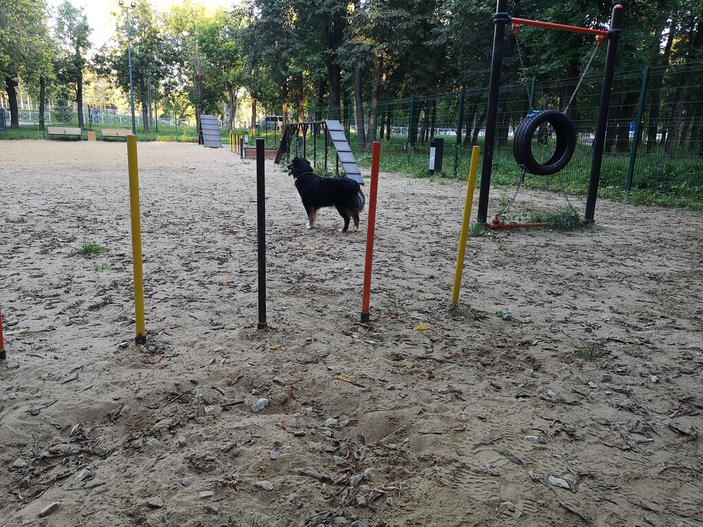 Хорошая площадка, большая, много снарядов, а самое главное, там мало отбитых на всю голову владельцев, которые не убирают за своими собаками. Моей собаке хватает места поиграть со своими друзьями, очень нравятся почти все снаряды. Место позаниматься послушкой тоже имеется.
