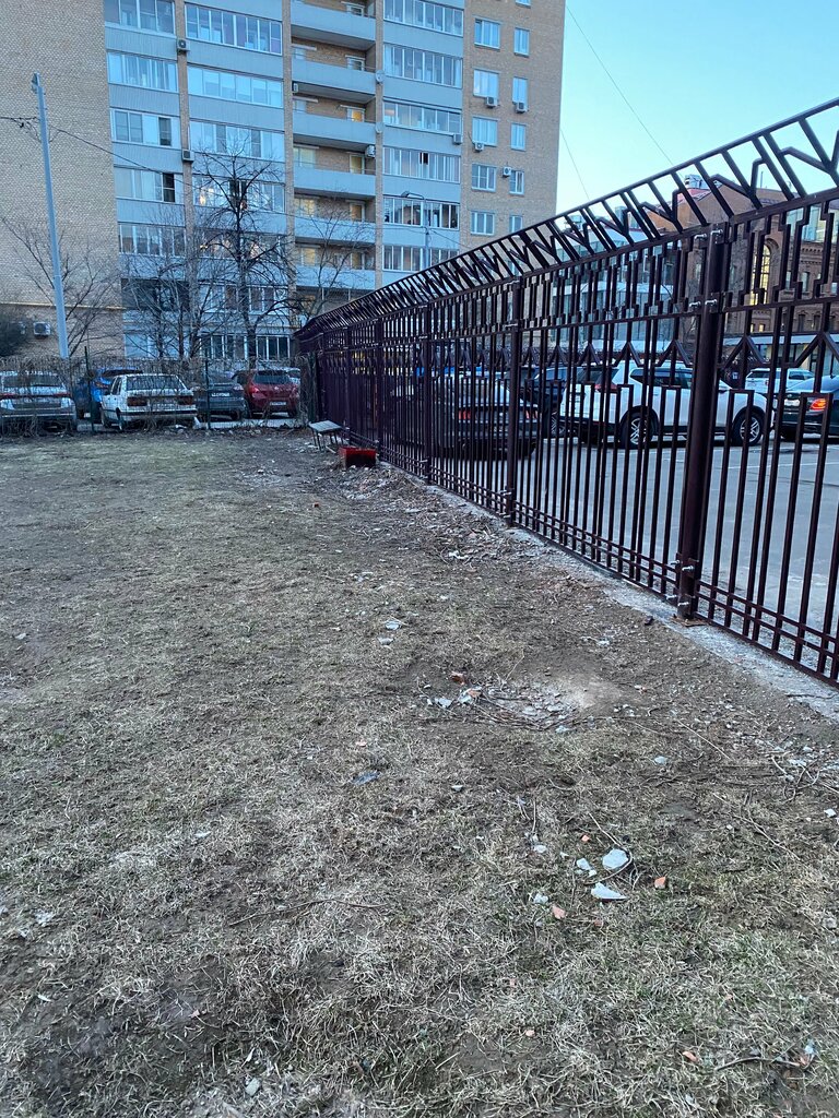 С одной стороны площадки забор с широкими рейками моя собака легко пролезет между забором, просьба огородить дополнительной изгородью со стороны офисов, стоянки.