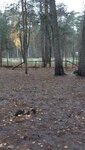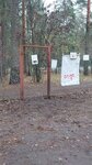 Небольшая площадка (на 1-2 среднюю собаку) со снарядами, которые давно не меняли. Расположена среди деревьев, на площадке достаточно сухо даже в дождливую погоду. Мы любим на неё заходить, побегать, попрыгать.