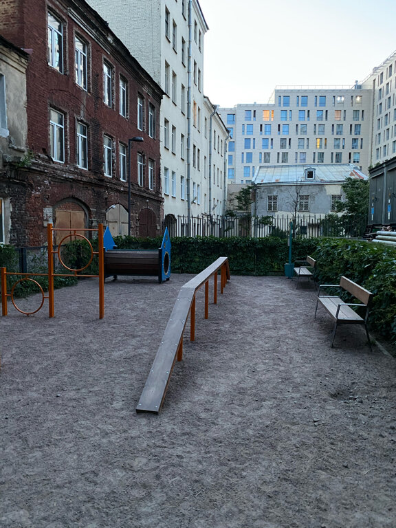 Ранее могли пройти спокойно, сейчас охранник агрессирует и не пускает. Очевидно, что руководство дало указание блокировать людей с улицы. Площадка принадлежит комплексу и находится на их территории. Небольшого размера, но обустроена неплохо.