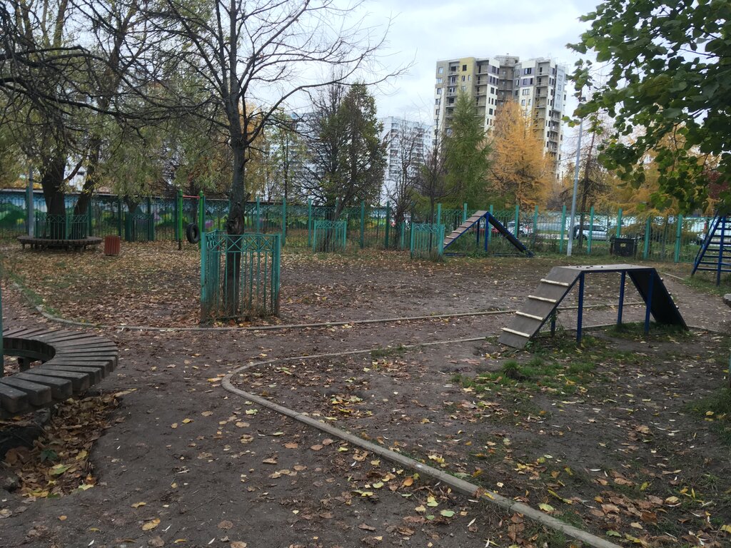 Огороженная площадка с различным оборудованием для занятий с собаками. Однако ухода за ней, видимо, никакого не ведется, некоторые снаряды уже поломаны( Хотелось бы провести "косметический ремонт", починить, покрасить, а то так и совсем в запустение придет.