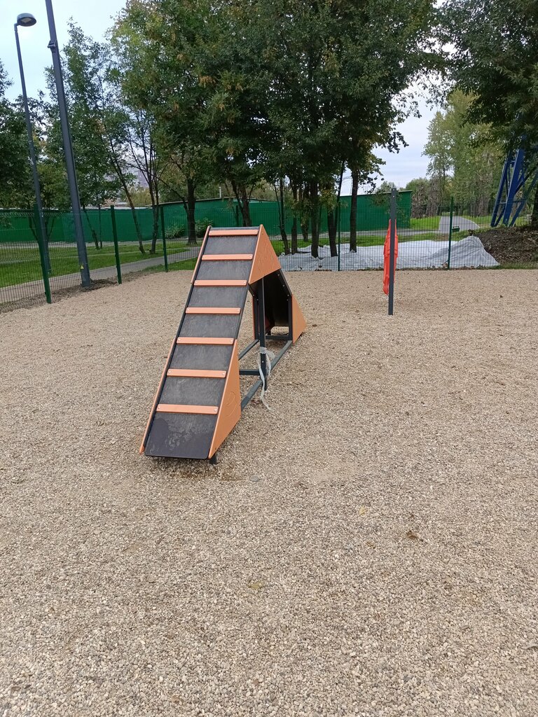 Очень хорошая площадка. Хотелось бы еще снаряд домик. Гравийное покрытие очень хорошее. Собаке тоже понравилось на этой площадке.