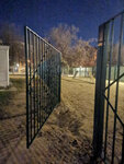 Новое ограждение не предусмотрено для собачей площадки! Расстояния между прутьями и под ограждением такое, что взрослый человек пролезет, а собака и подавно! Немедленно решите вопрос-замените на мелкую сетку рабицу, как было и как на детской площадке через дорогу (синяя на фото) Животные могут выбежать на дорогу рядом, прямо под колеса проезжающих машин. Дети и взрослые близлежащих домов тоже в опасности, если испуганная собака без поводка и намордника окажется вне площадки и без хозяина.