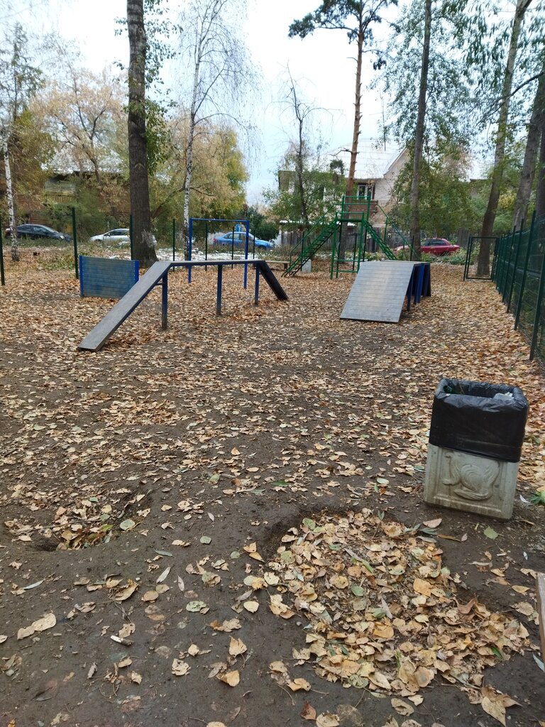 Хорошая площадка , мне понравилось : два барьера разной высоты, узкий и широкий бум , лестница. Минус в зимнее время- скользкие материалы из которых сделаны снаряды. А еще собаковладельцы почему то думают, что это место для пописов и покаков собак, а не для занятий с питомцем 🤦 более того, еще и не убирают за питомцами фекалии... Потому по углам все загажено 😒