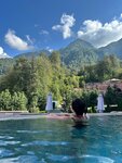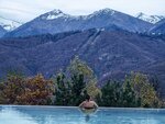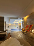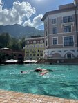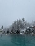 Приехали по рекомендации в спа комплекс и нам очень понравилось. Были зимой, 25 февраля, в очень снежный и холодный день, видимо поэтому было немного людей и мы смогли оценить все удобства этого места сполна. Расскажу по-порядку. Чтобы добраться до этого места, в идеале понадобиться такси или автомобиль. Возможно ходят автобусы, но это не точно )) Поэтому мы выбрали взять каршеринг. Дорога комфортная и очень красивая. В отеле вас встречают приветливые сотрудники, которые фиксируют ваше пребывания и направляют в зону спа. Она на -1 этаже. Там вас встречают не менее приятные администраторы, рассказывают технику безопасности, выдают тапочки, халат, полотенце. Само пространство не очень большое, поэтому прежде чем туда ехать - рекомендуют позвонить и уточнить по загруженности. Хочу отдельно отметить сервис, даже в телефонных разговорах ! От скорости ответа на звонок, до манеры общения, заботливого отношения. Конечно же, в основном многие приезжают в это спа за возможностью увидеть шикарный вид на горы из теплого бассейна. Вид и правда прекрасен. Температура воды отличная. Но пока добежишь из бассейна по улице до спа - очень замерзаешь 😁 этакая закалка. В общей зоне - лежаки и закрытый бассейн. Есть финская сауна и хамам. Маленькие на 6 человек максимум. Поэтому лучше приходить с утра. Говорят - меньше людей. В душевой есть все необходимое и довольно качественная косметика для волос (шампунь, бальзам) и гель для душа. Так же, есть фен и вкусный крем для тела. В целом хорошее место. Теперь хочется вернуться туда в солнечную погоду, Хотя горячий бассейн под снегопадом - зрелище очень красивое !