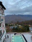 Отличный отель с хорошим дизайном и не уставшим интерьером. Отдыхали с семьей в августе 2025. Персонал доброжелателен и прекрасно подготовлен, вкусные и разнообразные завтраки. Уборка в номерах ежедневная и качественная. Главное отличие этого отеля - круглогодичный подогреваемый бассейн на улице с шикарным видом на горы. Можно бесплатно пользоваться канатной в сторону высоты 540 и обратно в течении дня. Спуск занимает около 8 минут. Есть крытая бесплатная парковка. На высоте 960 в Эстосадке есть аптека, продуктовый магазин и разные кафе и рестораны, так что можно комфортно жить даже не спускаясь на высоту 540. В целом отдохнули отлично. Разрешено пребывание с питомцами, правда правила пребывания очень противоречивы. Проживать с питомцем можно, но на завтрак его брать нельзя и в номере одного оставлять нельзя. В общем странно. Нам пошли навстречу потому что мы обязались брать питомца на завтраки исключительно в специальной коляске, которую предусмотрительно взяли в отель с собой.