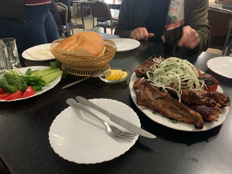 Дорогущая еда на этой базе чтобы по ужинать надо минимум рублей 700 но пообедать можно на стоянке бизнес ланч за 250