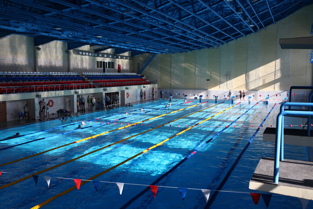 Огромный, глубокий и чистый 50-метровый бассейн, внимательный персонал, просторные раздевалки, гардероб для верхней одежды, аккуратные санузлы, много душевых, на первом этаже кафе, бассейн работает даже летом! Здание без евроремонта, но все ухоженное, есть даже лифт для инвалидов! Вот просто молодцы, слава Богу, что вы есть.