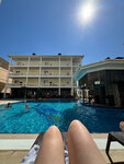 Доброго времени суток. Только 2 дня как вернулись из отпуска, с полным чемоданом впечатлений. Отель очень впечатлил, начиная внешним видом заканчивая персоналом. Бассейн чистый, теплый, подогреваемый и детский и основной. В номерах уютно, вода круглосуточно и горячая и холодная, не смотря что много отдыхающих, за 20 дней проживания ни разу горячая не заканчивалась, как бывало в других отелях. Девочки которые убирают номера и территорию трудяжки, очень вежливые и улыбчивые. Хозяева отеля доброжелательные, следят за порядком и территорией, и это заметно. Отель выглядит так, будто его только построили. Мальчишки бармены молодцы, отдельный им привет за любовь к детворе. Всегда радушны в общении с ними, улыбчивы. Ведь дети большое время проводят в бассейне а бар находится в самом бассейне, и дети так и норовят посидеть за стойкой, попить прохладительных напитков(котороые всегда в наличии) и пообщаться с ребятами. Спасибо большое за чудесный отдых! Из 20 дней отдыха на море были только 3 раза, остальное время провели в бассейне. До моря пешком 10-15 минут. Но городские пляжи не очень, мы ездили на такси на пляж Меганом и Ракета. Интернет в номере туговат, ловит только в туалете или возле входной двери, поэтому работающим людям будет тяжеловато, но он всегда есть на переднем и заднем дворе. 4 джи в номере ловит, но с перебоями. Территория ухоженая, везде цветы, пальмы, туи. В номере нет чайников и фена. Холодильник есть и тв. Но на территории есть 2 обеденные зоны там и 2 чайника и 2 микроволновки. Поэтому с голоду не погибнете) в двух шагах от отеля есть чудесная столовая Хорека. Там конечно в час пик много народа, но очень большой выбор блюд.
