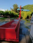 Очень красивая территория ,насаждения ,деревья и цветы ,видно ,что ухаживают и поддерживают!на некоторых горках чувствуются стыки ,потом болела спина,мало горок для детей ,либо совсем для меленьких ,либо взрослые .цены в кафе очень дорогие ,бургер 600,чипсы 300.вход недешевый.пора обновиться и добавить современных детских водных аттракционов.