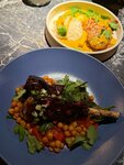 440 gГлазированная голень ягненка с пюре из сельдерея, нутом и гранатом