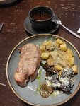 Пришли рано поужинать в пятницу около пяти и почти все столики были забронированы! Видимо, место популярное. В целом была приятная не шумная обстановка, вкусный салат Цезарь и большая порция со свининой отбивной и гарниром - повару точно 5 звезд! Но! Что то странное с обслуживанием... В заказе был и десерт с кофе, но кофе принесли, а десерт забыли принести даже после двух напоминаний! Тем не менее не забыли включить его в счет. Милая девушка очень удивилась, что так и не принесла черничный пирог, хотя мы ждали его полчаса после очередного напоминания. Это, увы, испортило впечатление плюс потраченное время и холодный кофе ожидания.