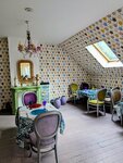 Замечательное место в легендарном поселке художников на Соколе . Очень интересный интерьер , много разных зон для детей в том числе. Есть балкон, камин . Интетьрвмв стиле Прованс Кухня на высоте выбор большой , очень необычное место. Думаю, что зайти очень приятно .