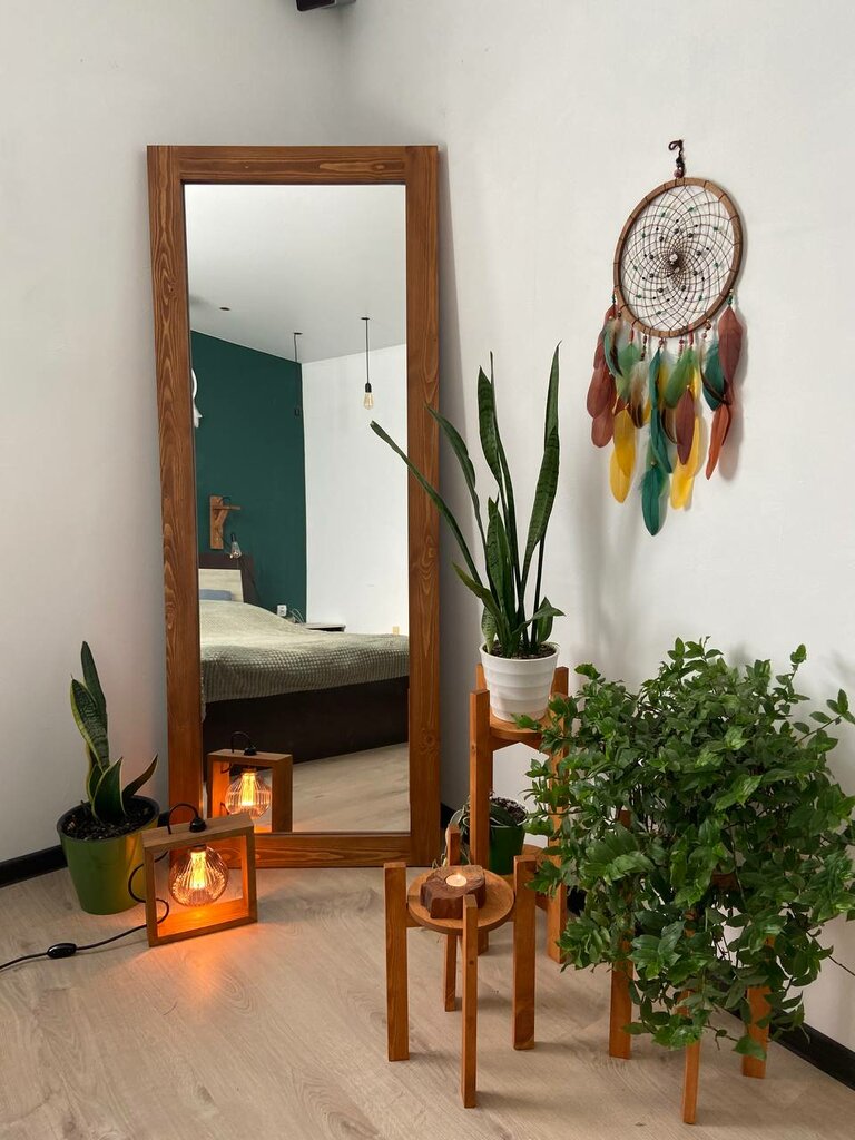 Зеркала напольное с подставкой выполнино в деревянном обрамлении (дерево хвойных пород) Размером 180 на 70 см. Может стоять не зависемо в любом месте с регулировкой наклона, так же можно сложить подставку внутрь и повешать зеркало на стенку( с уч...