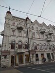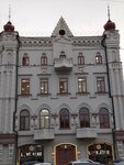 Красивый дом исторической постройки, необычной архитектуры и формы, разные оконные проемы на каждом этаже. Сколько помню, всегда был в сером цвете. А еще помню гастроном на первом этаже, с шикарным кондитерским отделом. Высокие потолки с лепниной были в том гастрономе. И коммунальные квартиры над ним. Сейчас дом отреставрирован и особенно красив по вечерам, с подсветкой.