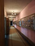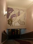 Не совсем обычный внутренний интерьер, впрочем, для такого здания это вполне нормально. Очень крутая лестница с ковровой дорожкой, ведущая от парадного входа на первый этаж, туалетные комнаты на цокольном этаже, в гардеробе самообслуживание, не совсем обычный буфет, был фуршет с чаем и бутербродами. В целом понравилось, от метро не так далеко пешком пройти 10 минут.