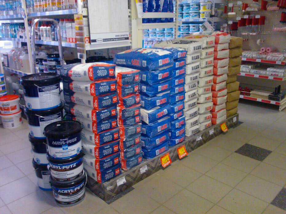 It's amazing how so many items fit in such a small area. The range is very large. Everything you need is there. What is not there is the possibility to order in the online store. We needed sand concrete. He was only in OMA.