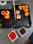 Роллы разных видов, все вкусные, свежие. Доставка быстрая. Суп и теплые роллы не остыли. Приятный подарок! Заказываем не в первый раз, всегда отлично, можно не переживать за вкус. Рис правильный, не скомканный, как попадалось у других. Рекомендую!