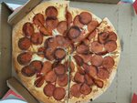 Отвратительно! Заказ ждали 3!!! часа. Пишите тогда при заказе, сколько ждать, раз у вас нет работников. Теперь о самой пицце. Такого безобразия не было никогда!!! Хотя заказываем у вас много лет. Тесто у пиццы вообще не воздушное, плоское, бортов нет никаких - как печенье. Какая-то глобальная экономия на ингредиентах, часть теста пустая, ни соуса, ни сыра. Просто покидали мясо и чуть-чуть присыпали сыром. Бутерброд с колбасой я и так могу съесть. На второй пицце спалили всю колбасу!!! И опять полуголое тесто, чуть капнули соус и еле присыпали сыром. Верните деньги за заказ!!! Это какой-то позор, а не пицца. И привезли её, разумеется, холодную. Вечер безнадёжно испорчен! Раньше у вас была лучшая пицца, а сейчас такая, что в школьной столовой и то приятнее была. Каждый раз зарекаюсь у вас заказывать, но надежда на лучшее побеждает. Но теперь всё, это уже последняя капля.