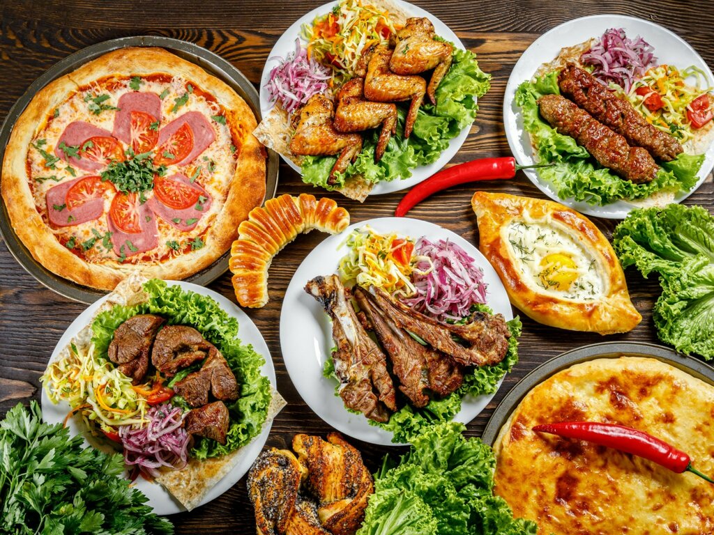 Variety of food:sweets, pizza, ossetian pies, home cooking, baking, shashlik