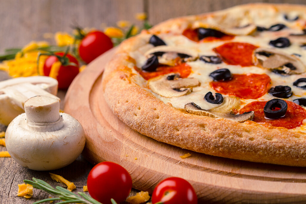 Пицца грибы и ветчина