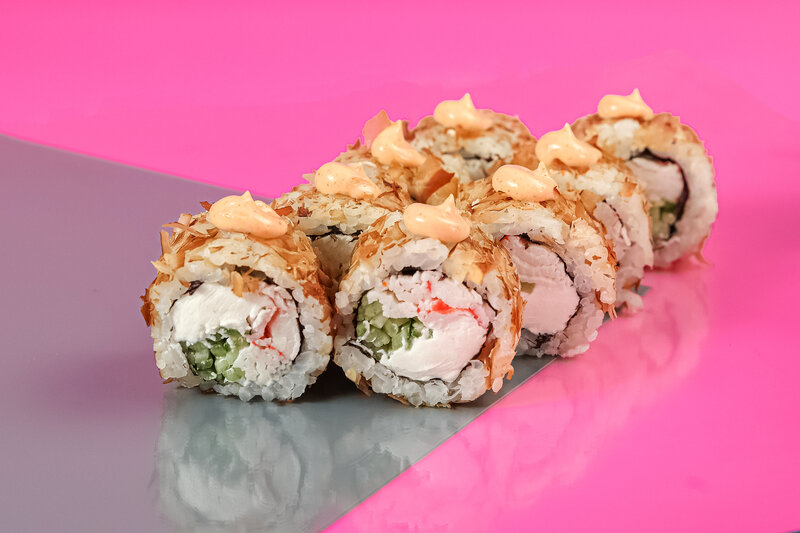 Это блюдо — настоящее наслаждение для гурманов. Нежный сырно-сливочный вкус ролла дополняется овощами, морепродуктами и икрой. После запекания ролл поливают соусом терияки, что придаёт вкусу насыщенность и гармонию. Каждый кусочек блюда наполнен ярки