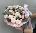 Заказывала букет в корзинке для сестры. Менеджер отвечала в вотсапе, очень отзывчивая, фотки все отправила, что можно сделать, что можно поменять, как будет красивее смотреться. Всё отлично. Единственное - по фото нельзя понять реальный размер букета. Точных размеров мне не написали, и немного не совпало мое ожидание с реальностью в части размеров. Но сам букет получился нежным и красивым, на прищепке был конверт с каким-то средством для ухода за розами и открыточка с печатными словами (сама текст писала в форме, на открытке напечатали мне). Мило, симпатично, цветы свежие, как мне показалось. Сняла звезду за "ракурс на фото") хотелось бы иметь более точное представление о размерах букета. Доставили в срок, даже раньше, согласовав предварительно время в день доставки.