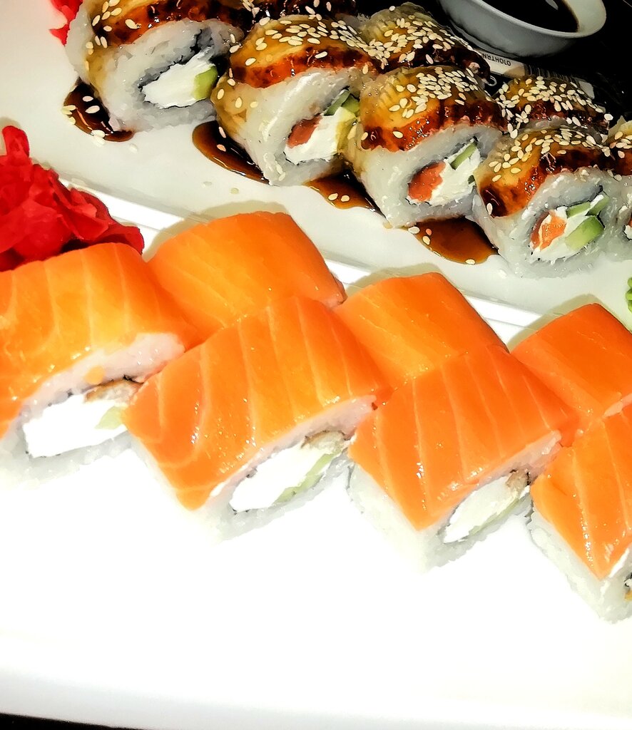 Внутр. Простенько, но посидеть можно. Пицца вкусная, сырная, довольно большая. Есть лёгкий налёт домашнего приготовления. Доставка работает, достаточно быстрая. Прайс средний, хороший продукт за свою цену. Брал там ещё и суши 1 раз, но тут как и в одьшинстве мест, где суши не основное, не особо.