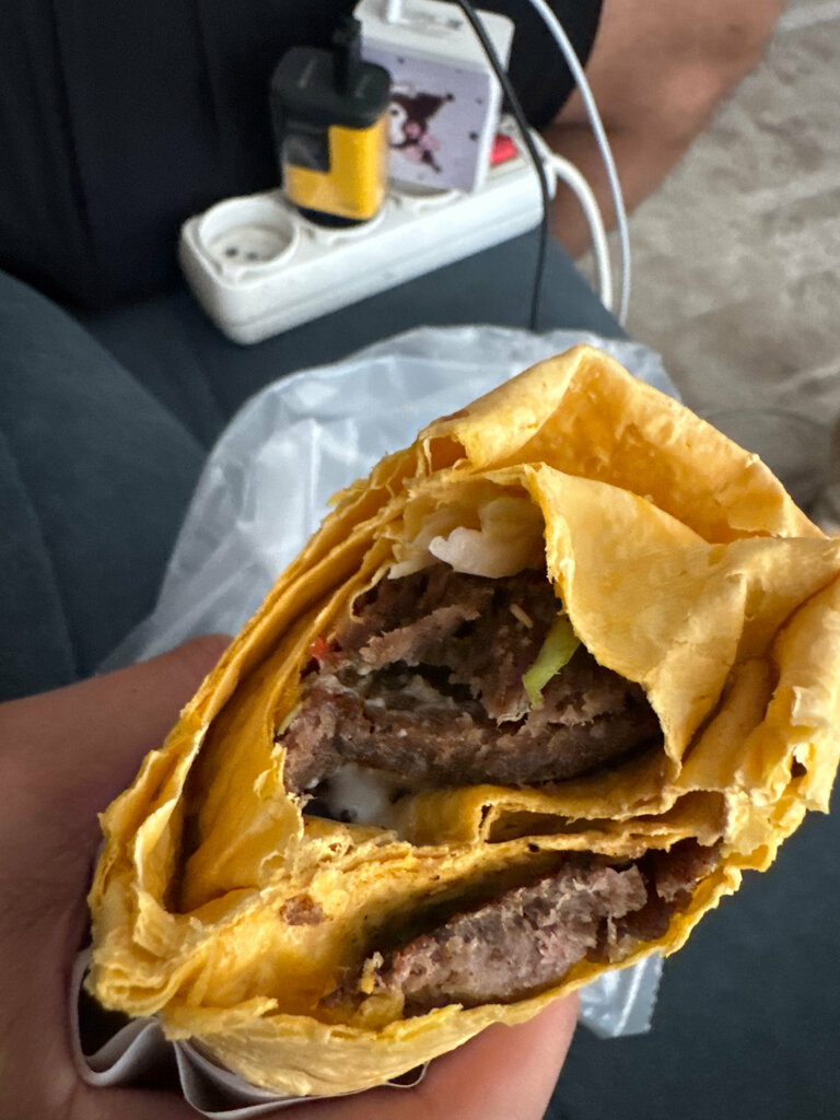 I often dine at this place. The kitchen is normal. But today, instead of shawarma, I got pieces of charcoal in pita bread with sauce. This is not meat, this is an outrage on the corpse of an animal. And the 200 soms thrown away.