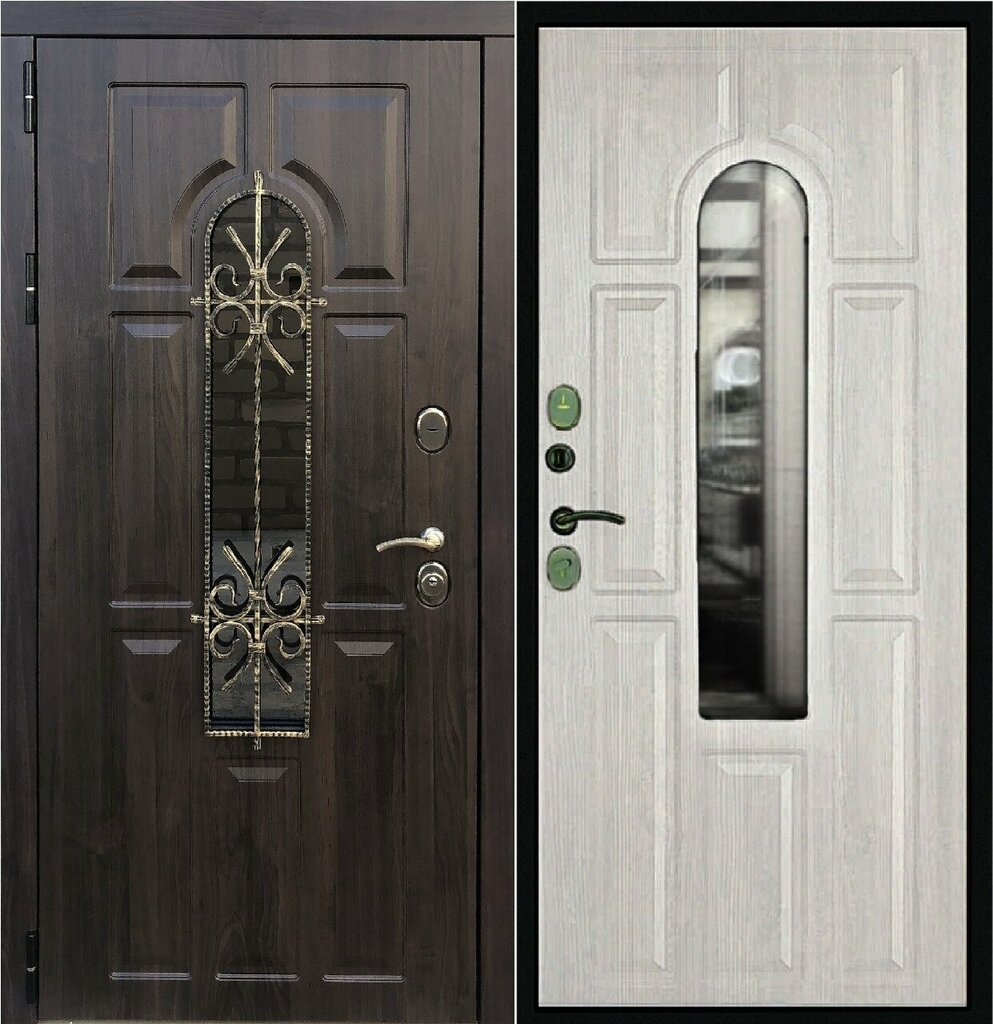 Отличная тепло- и звукоизоляция (три контура уплотнения и терморазрыв). Наружное покрытие двух цветов серебро и антик медь.