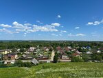 Прекрасная действующая церковь слева. Можно погулять по территории, 50 руб вход. Смотровая площадка. Можно купить в палаточке мед и т.д. Есть туалет.