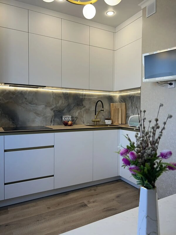 Прошел почти год как нам установили кухню, она все еще как новая, отдельная любовь это стеклянный шкаф 😍 Качество на высоте, шкафчики открываются тихо, все доводчики плавные, даже придраться не к чему)) Большое спасибо дизайнеру Елене, учитывает и продумывает каждую мелочь