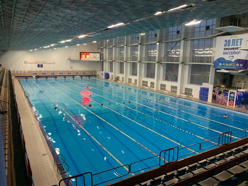 Единственный 50 м бассейн нашего города! Самая чистая вода, комфортная по температуре для плавания любителям и спортсменам. Большая раздевалка! Вежливый персонал на рецепшен. Большое фойе внизу для ожидания, много диванчиков. Имеется магазин с аксессуарами, что тоже удобно, если что то забыл или "вышло из строя".
