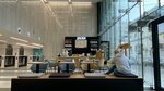 Двойной эспрессо + сливки = 320р. На мой взгляд, за этот ординарный по вкусу эспрессо, цена завышена. В остальном все обычно, уголок со столикам в холле при турникетах и выгородка , где варят кофе. Не моя сеть, нет.