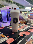 Из плюсов-хорошая упаковка. Из минусов:Невкусно!Прям совсем. Чай с молоком за почти 400 рублей, но в подарок слипшиеся безвкусные шарики, которые гроздями попадают в рот, вызывая рвотный рефлекс. Очереди жуть. Парень на кассе еле кнопки жмет. Простояли минут 15 в очереди, т.к дочь очень просила новомодный напиток. По итогу, никто это чудо пить не стал.